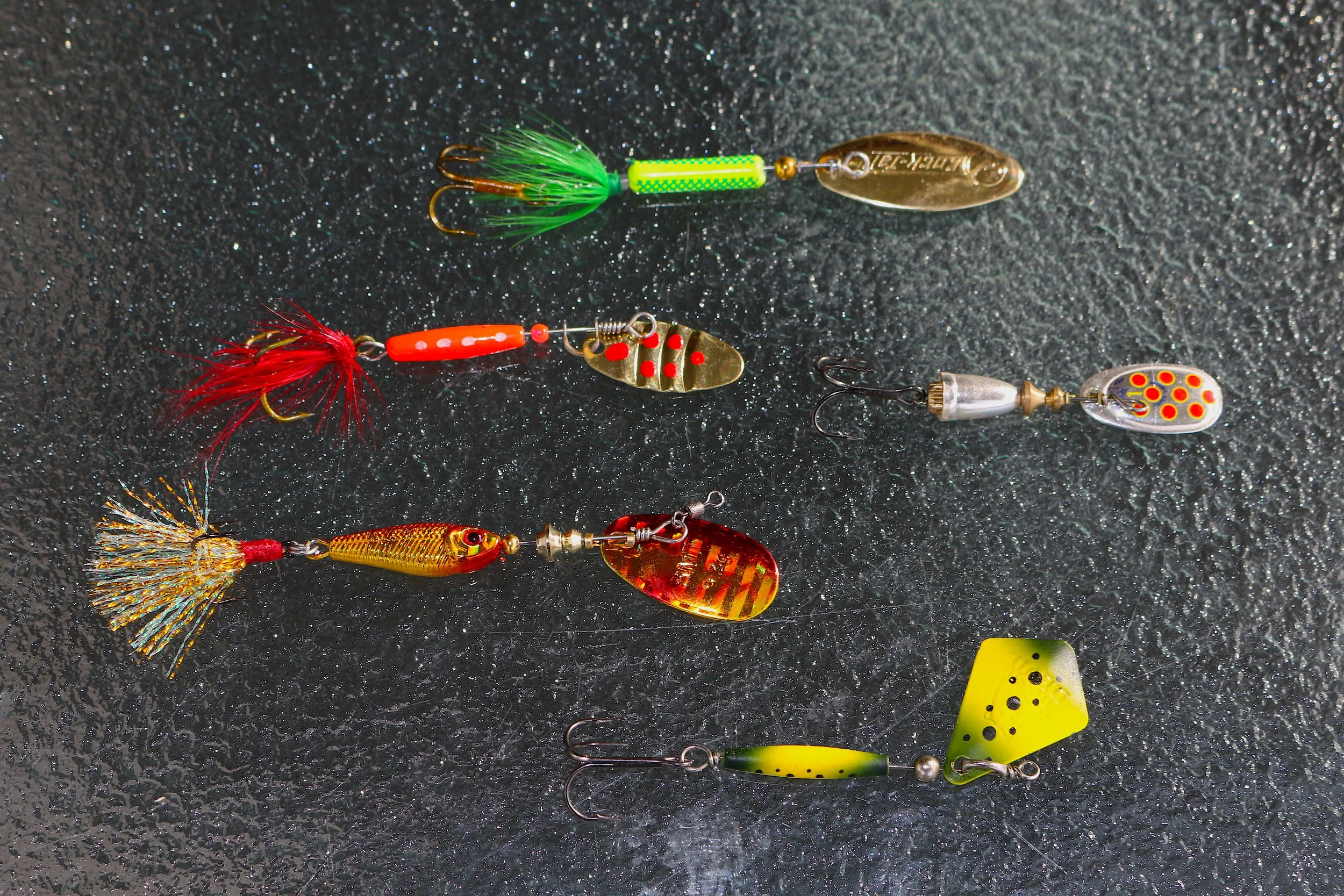 Spinners have been around since the 1960s and are one of the most popular trout lures available. They are cheap, simple to use and highly affective on aggressive trout in both streams and lakes. The rotating blade on the main shaft of the lure sends out flashes of light combine with a enticing vibration that feisty rainbows cannot resist. A slow, methodical retrieve is all that is required to get the blade rotating and generate a strike.